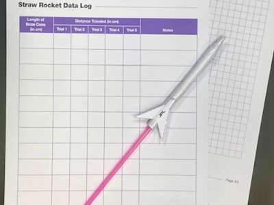 Create a paper rocket that can be launched from a drinking straw - then, modify the design to make the rocket fly